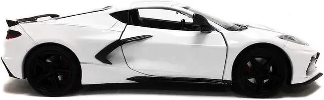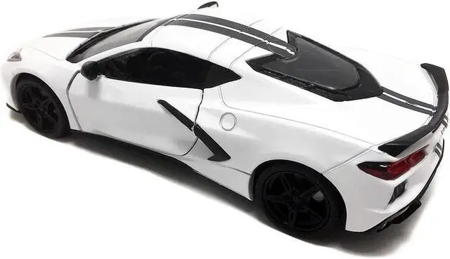 Brand new 1/24 scale diecast car model of 2020 Chevrolet Corvette C8 Stingray White with Gray Stripes die cast model car by Motormax.