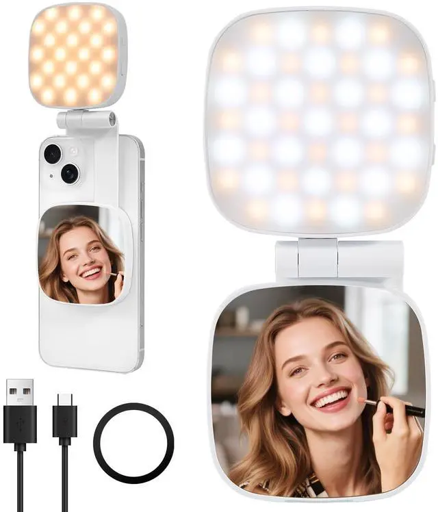 Built-in Makeup MirrorThe cell phone fill light has a built-in HD makeup mirror, which can be used in conjunction with the fill light, so that you can quickly make up your makeup anytime, anywhere, and maintain a perfect makeup, and check your facial expression at any time during the shooting, so that you can show the best state in front of the camera.