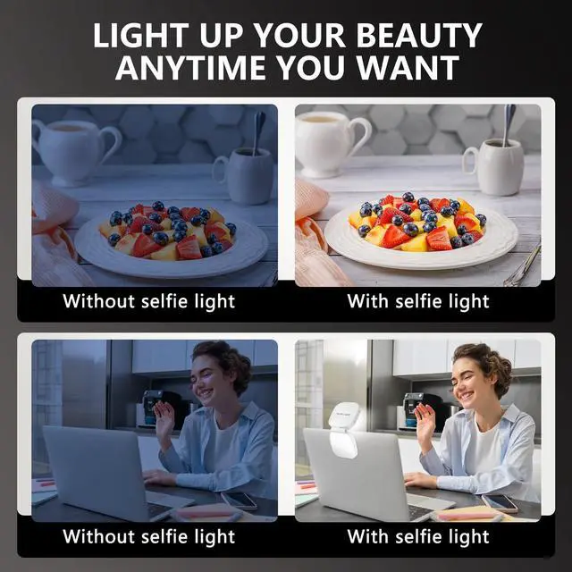 360° Swivel and Telescopic Design Flexible 270° vertical and 270° bi-directional flip adjustment, you can quickly switch to selfie light or photography light, and horizontal 360° rotation can be a full range of complementary light, do not block the lens, to ensure full illumination.