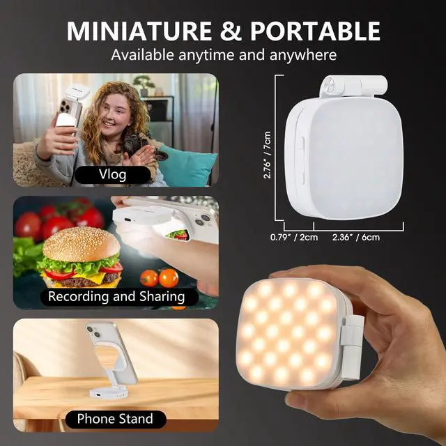 Magnetic AttachmentThe Magnetic Fill Light is Magsafe compatible and instantly attaches to magnetic cell phones for selfies, video shoots, video blogging and beauty shots. Compatible with iPhone 16/15/14/13/12/11 series, other non-Magsafe cellular devices, you can use the included metal ring.