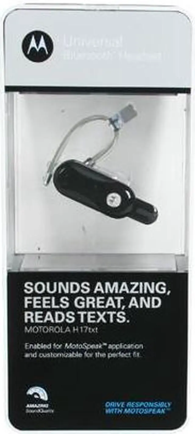 | Features | Connector Port: Micro USB On/Off Switch Quick Battery Check MotoSpeak Application: a smartphone application that reads text messages (SMS) and emails into the headset, in real time. Multiple-Handset Enabled RapidConnect Advanced Multipoint: Connect simultaneously to two mobile phones, Manage call-waiting between two Bluetooth sources Easy Pair: EasyPair technology simplifies how you connect with Bluetooth compatible devices Multipoint Universal CrystalTalk Technology Advanced Voice Prompts 2-Mic Automatic Volume Adjustment TrueComfort: Customize ear hook and gels for on-ear or in-ear wearing style Form Factor: Flip Reversible Ear Hooks |