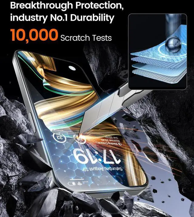Indestructible Ultra 9H Glass for Ultimate Protection 9H Nearly DIAMOND-LIKE HARDNESS Screen Protector iPhone 16 Plus/iPhone 15 Plus to completely avoid shattering, cracking and scratches. Thats up to 4X stronger than traditional tempered glass protectors and effectively protects the entire phone screen from compression or other impacts.