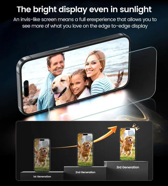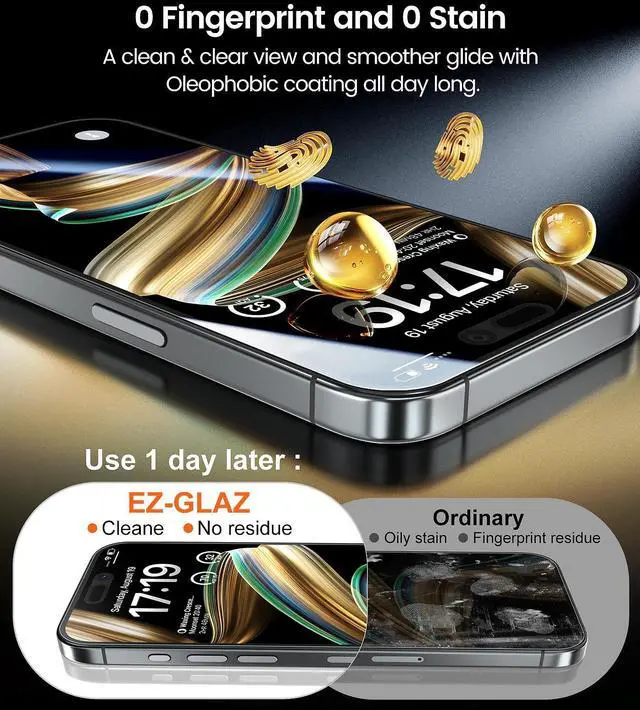 Ultra-Clear and Ultra-SensitiveThis protective film covers the iPhone 16 Plus/iPhone 15 Plus 6.7-inch, ensuring you feel as if there's nothing on your iPhone screen.The High-Quality OLEOPHOBIC COATING keeps your screen fingerprint-free, air bubble-free.So bring you the most natural iPhone 16 Plus/iPhone 15 Plus viewing and 3D sensitive touch, smooth video playing and gaming.The perfect crystal spotless experience makes you unwilling to stop.