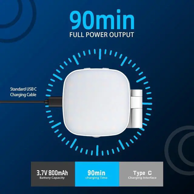 Package Contents: 1* LED Video Light, 1*Magnetic Ring,1* USB-C Cable, 1* User Manual.