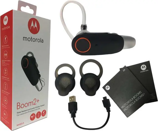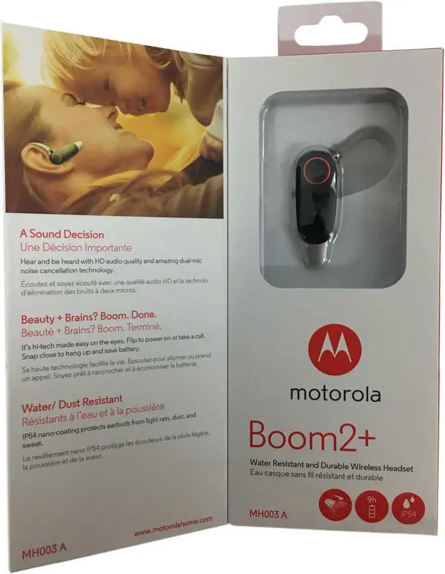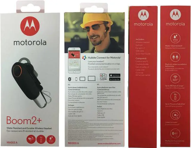 | Features | IP54 coating protects headset from light rain, dust, and sweat. Flip open the boom to take a call and snap it closed to hang up and save battery. Get comfortable with three wearing styles, assorted hook sizes, and multiple ear cushions. Be heard clearly thanks to HD audio quality and dual-mic noise canceling technology. Roam up to 300ft with call clarity, up to 9 hours of talk time. Easily switch between two devices with integrated multipoint technology. Compatible with any Bluetooth enabled smartphone or tablet. |