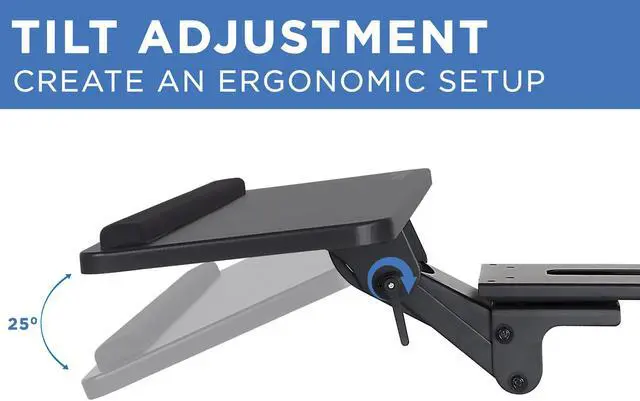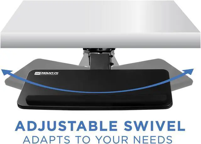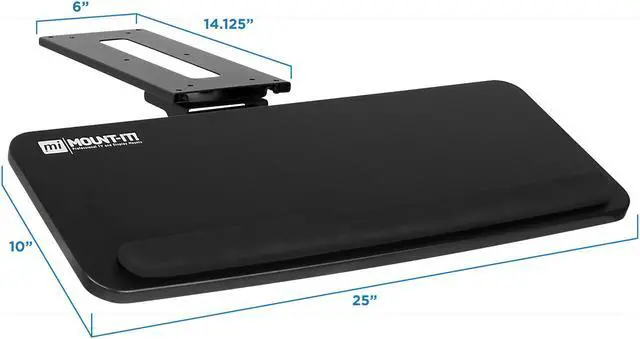 Mount-It! Adjustable Under Desk Keyboard Tray | Ergonomic Computer Keyboard and Mouse Platform with Wrist Rest Pad Mount-It! Under Desk Keyboard Tray saves you space and helps improve ergonomics at your desk. Maximize your workplace comfort while getting the support you need. Works with Samsung, Asus, Z-Edge, Viotek, GIGABYTE, LG, and leading brands.-Keyboard tray measures 25 inched wide and 10 inches deep and can accommodate all types of keyboards - 5.5