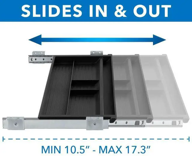 The MI-7144 sliding desk tray is an efficient organizer for your pens, pencils, notepads, and other office essentials. Five compartments help you organize your supplies and keep clutter off your desk. Free off your desk space by storing your supplies. Slide the drawer out when you need it, and back when youre finished. Easy to install in just two steps.