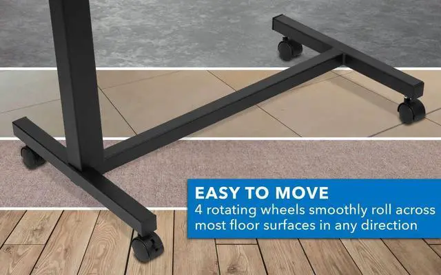 This rolling over the bed table is great for a variety of uses and environments. Use it in bed at home, as a medical or hospital bed, and it's even great for use in wheelchairs. Stay comfortable while you eat, write or surf the web from your sofa or bed. The locking casters prevent any unwanted movement while in use and features an easy to use height adjustment lever to get the height just right. The large work 30"x15" work surface is designed to hold up to 33lbs.