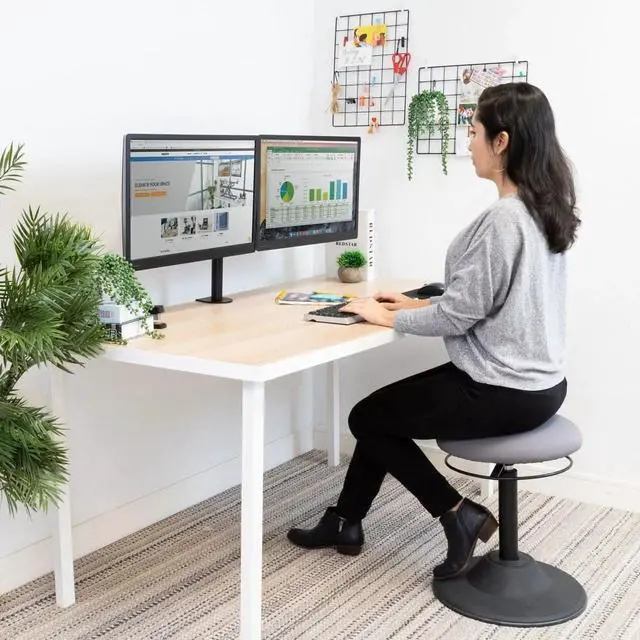 Optimize your desk setup with the MI-1752 Height Adjustable Full-Motion Desk Mount, a comfortable and organized solution for dual-monitor users seeking to enhance productivity and create an ergonomic work environment.