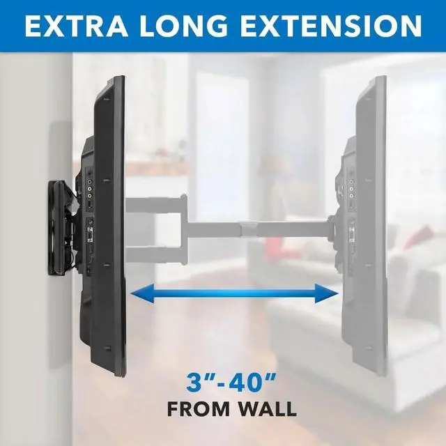 Perfect solution to mount your TV anywhere you want. The extra large extension combined with the full motion capability allows mounting your TV at exceptional points.