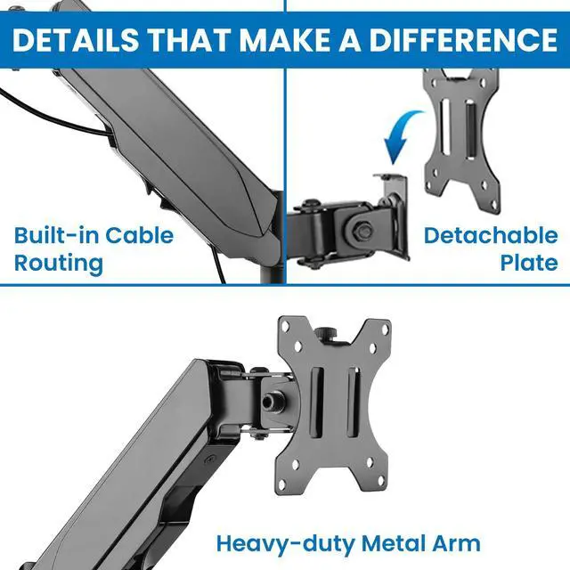 Designed to be high performance, the Mount-It! single monitor wall mount helps you free up space and optimize your health and wellness. Wall-mounted monitor arm is perfect for glass surface and building a wall-mounted workstation with a keyboard tray.