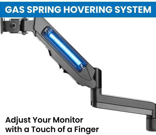 A built-in gas spring allows for smooth and accurate adjustment to comfortable reading positions. Flexible tilt, pivot and swivel functionality provides comfortable monitor angles.