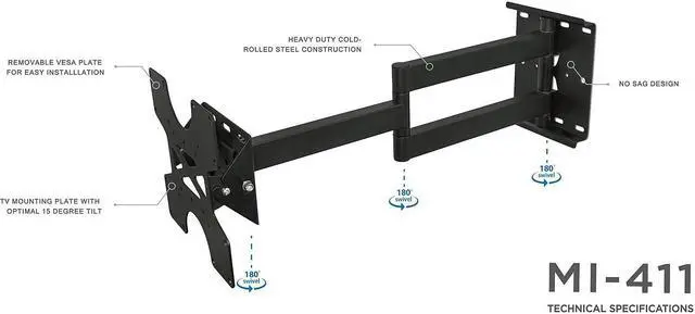 Enjoy your viewing experience even more with this Mount-It! full-motion articulating TV wall mount. It can extend out to 25 inches from the wall, and swivel 180 degrees so you can adjust to your viewing needs. Adjust the TV to suit a variety of seating arrangements, and the next time you have guests over for movie night! This mount allows you to place your TV where you want.