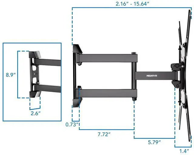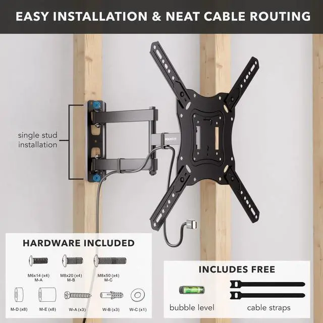 This articulating TV mount arm offers full motion capability to adjust your TV for optimal viewing experience. Single stud installation simplifies the placement of the TV on the wall. 15.7 inches of extension is ideal for corner installation. Simply pull the TV away from the wall and turn it left or right. This wall mount bracket is also ideal for large computer monitors up to 35" and ultrawide monitors with larger VESA patterns.