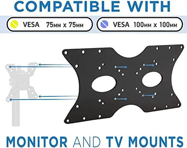 MONITOR MOUNT ADAPTER: Don't throw away your old TV mount or monitor stand just because you bought a new display with a larger mounting pattern. Use our TV wall mount adapter plate to extend the reach of your existing mount. ^^ VESA adapter plate for wall mounts up to VESA 400x200 mm so that larger size TVs can be mounted. Converts VESA 200x200, 200x100, 100x100, 75x75 and 50x50 mounting patterns to VESA 400x200, 300x200, 200x200, 200x100, 100x100. ^^ SOLID STEEL