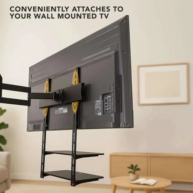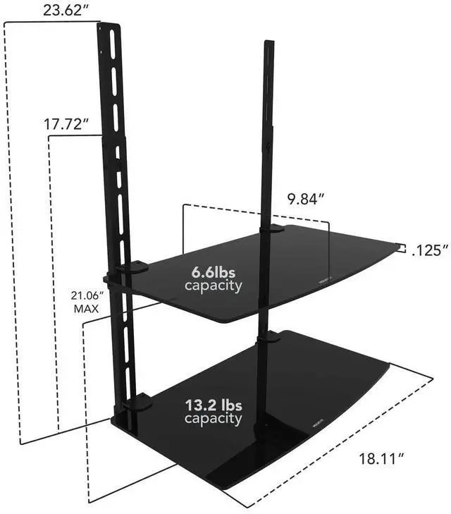 Mount your TV along with your cable box with this DVD Mount Bracket! The bracket is designed to attach to the back of your TV in its VESA mount holes. Once you attach the TV, you are able to place your cable box or DVD player onto the shelf. Shelf has a 22 lbs. storage capacity. If you want your TV to stay on a shelf, you can also attach the bracket above the TV.