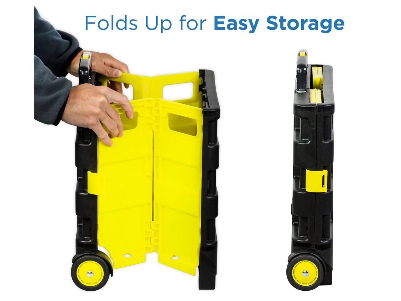 - COLLAPSIBLE ROLLING HAND CART WITH LID – Lightweight utility hand truck perfect for moving books, paper, classroom supplies, personal items, file folders or groceries. Save your back and carry things around with the right tool for the job. Perfect for use at home, office, business, travel or shopping. Let our rugged dolly do the heavy lifting.