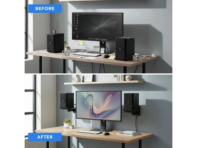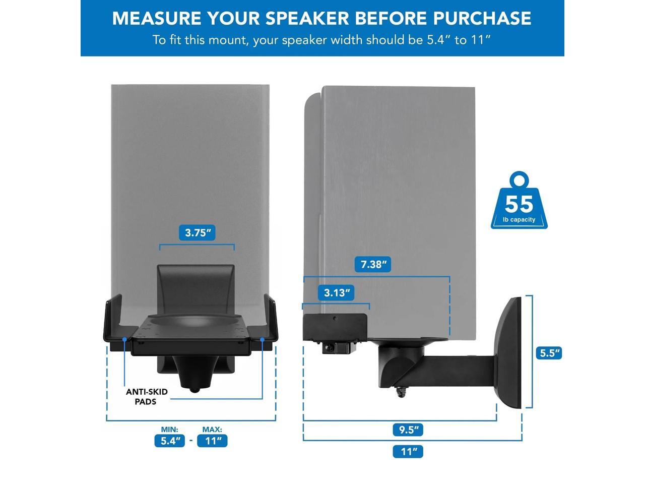 Mount-It! Speaker Wall Mounts | Universal Side Clamping Bookshelf Speaker Mounting Brackets | 2 Mounts