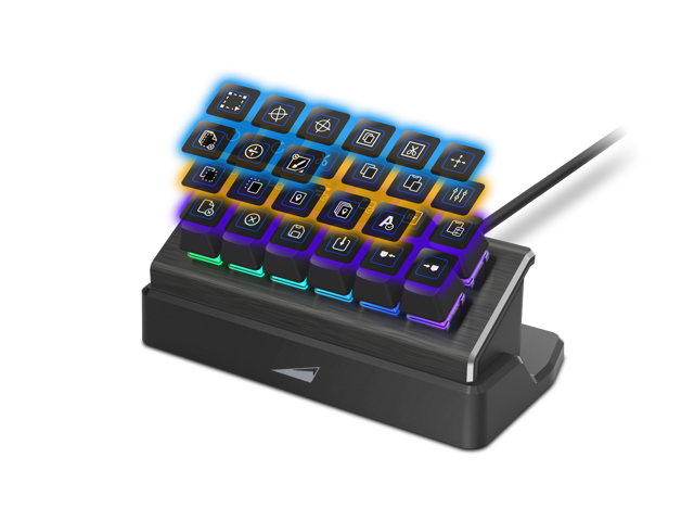 - 12 freely customizable keys, using hot swappable and factory-lubricated MOUNTAIN Tactile 55 Switches