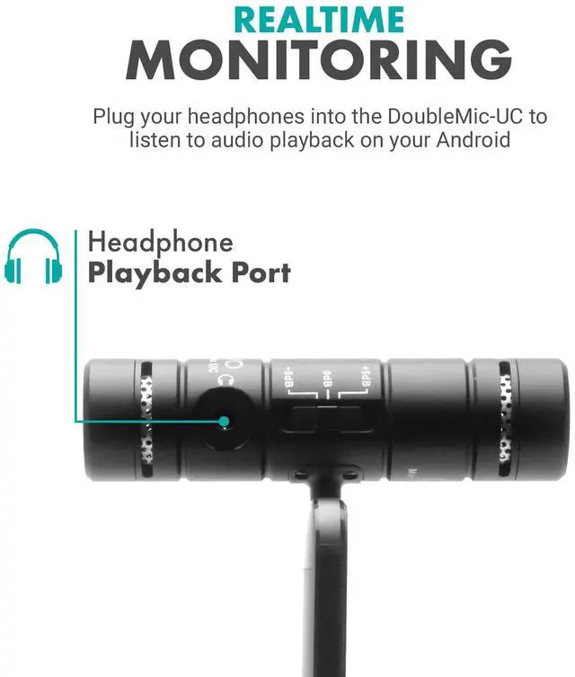 ONBOARD CONTROLS AND MONITORING: Dial in perfect audio easily on this phone mic with built-in gain controls for -5/0/+5dB and 3.5mm headphone out to monitor your sound in real-time. Selector switch allows you to record the front or rear capsule separately, or capture both simultaneously in isolated stereo tracks