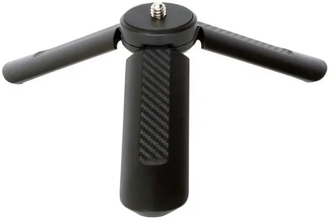 IN THE BOX: 3.7" mini tripod with 1/4" screw and anti slip rubber feet. Tripod legs fold to become a convenient handheld grip
