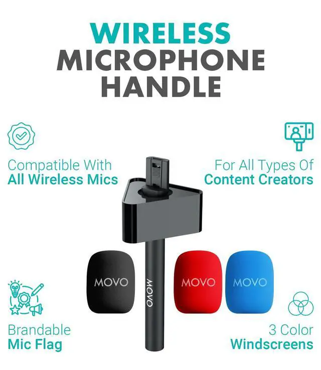 WMX-HMF2 Wireless Microphone Handle with Mic Flag Handheld Grip for DJI Mic, Rode GO II Includes Lav Microphone Holder, Adapter & 3 Windscreens for Interviews, YouTube & TikTok