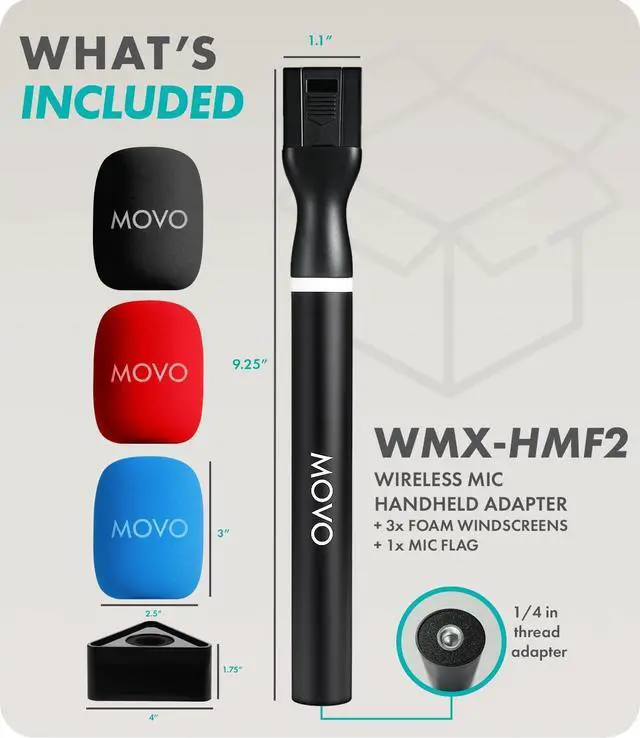 INCLUDES EVERYTHING YOU NEED: Comes with handheld grip, mic holder, adapter, black/blue/red windscreens, and a blank mic flagideal for branding, segment labeling, or content customization.