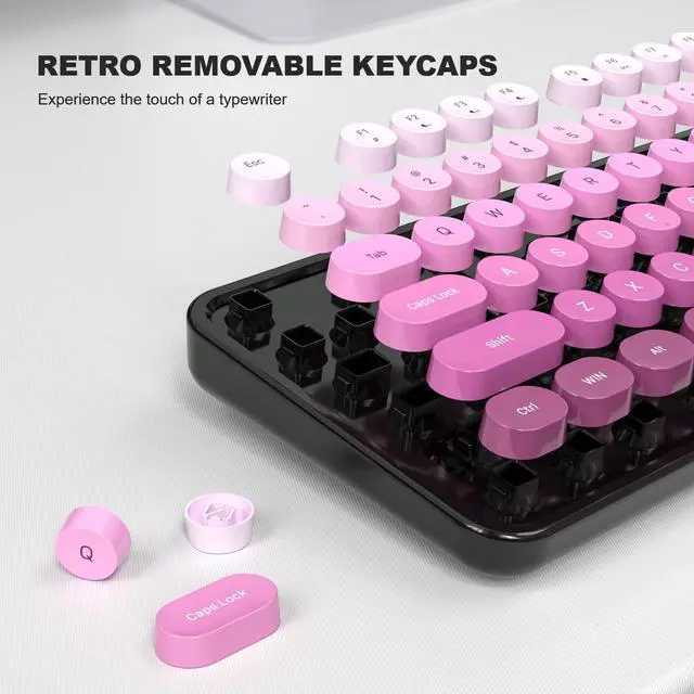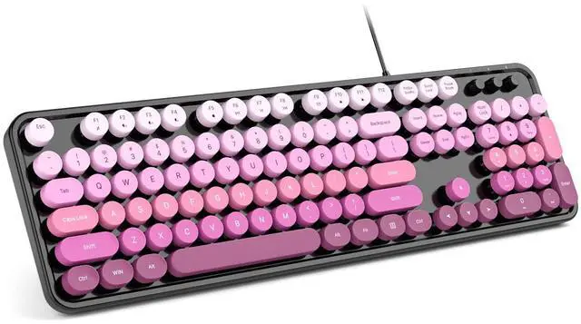 Computer Keyboard Wired, Plug Play USB Retro Round Typewriter Keyboard, Full Size Wired Keyboard with Foldable Stands for Laptop and Office PC