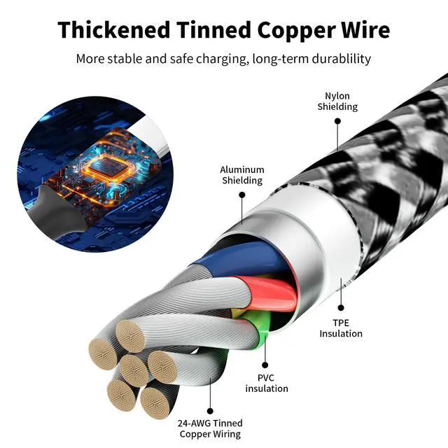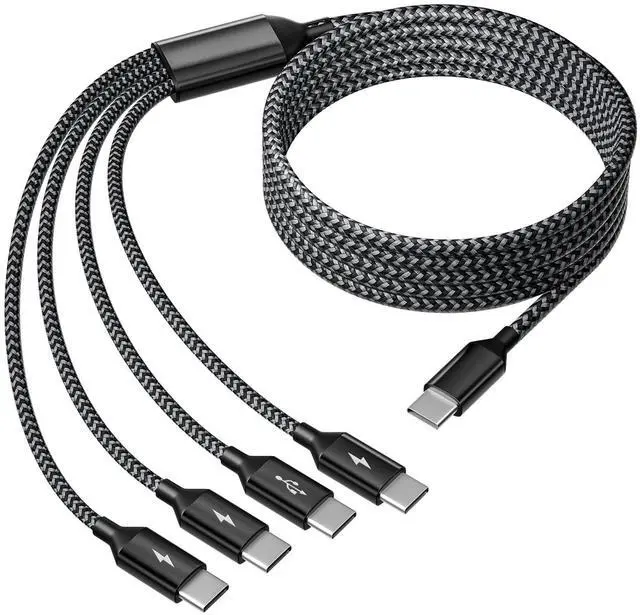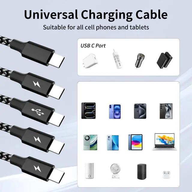 SAFE CHARGING IS ABOVE ALLThe travel 4 in 1 usb c to usb c cable features Thickened Tinned Copper Wires, enjoying superior conductivity for safer, more efficient and stable charging. Built-in ntelligent current regulation, this usb c multiple iphone charger cord can also safeguards your devices' batteries life.