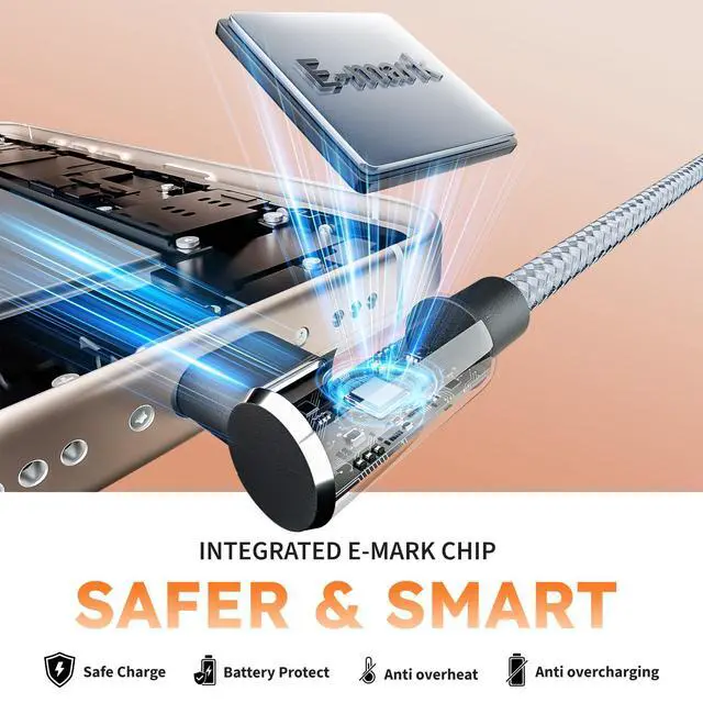 COMFORTABLE GRIP:Unlike standard USB-C charging cables, this 3 in 1 usb c right angle cable features an ergonomic L-shaped connector designed to prevent fraying, reduce stress on the port, and extend the cables lifespan. The right-angle design ensures a snug, low-profile connection, making it perfect for gaming, scrolling, or watching videos while chargingwithout getting in the way.