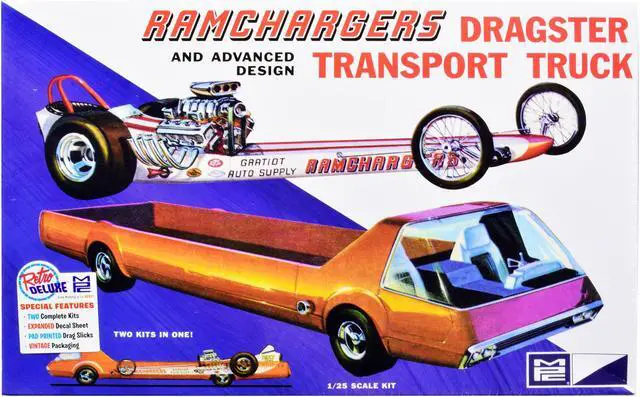Brand new plastic model kit of Ramchargers Dragster and Advanced Design Transport Truck 2 Kits in 1 (Skill 2) 1/25 plastic model kit by MPC.