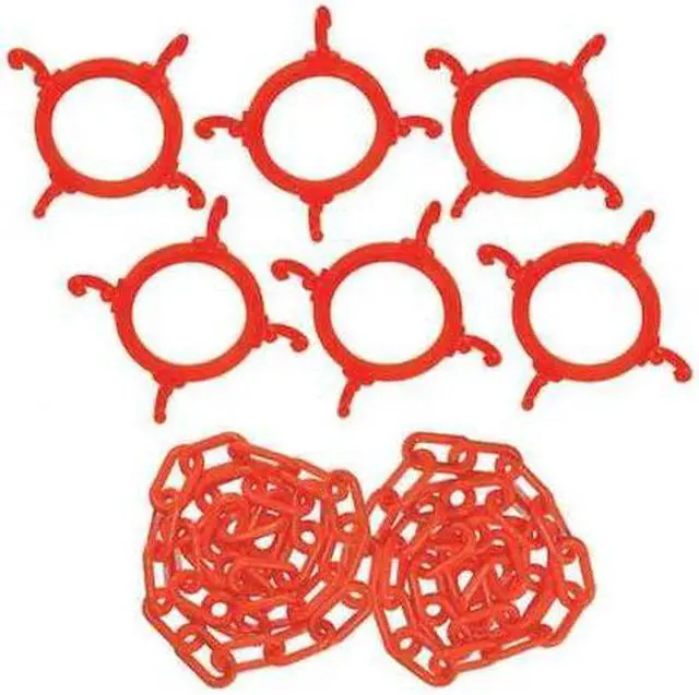 Plastic Chain Kit, Application Outdoor or Indoor, 600 in, Orange, UV Inhibited Polyethylene, Gloss Finish, For Use With Traffic Cones, Includes (6) Cone Chain Connectors, 50 ft Plastic Chain. This item has been restricted from sale in the following state (s): []