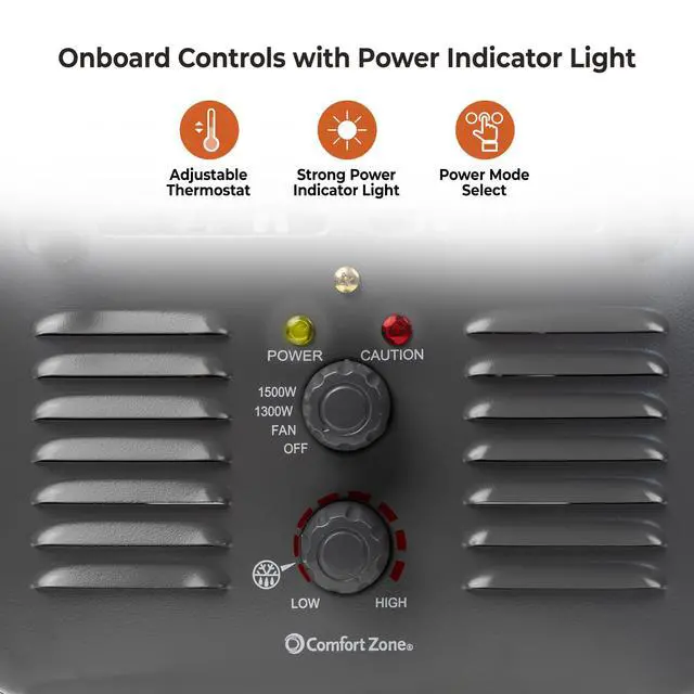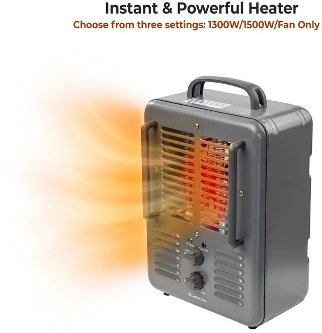 Experience the flexibility of our utility heater with its three powerful settings. Select between low and high heat options to suit your preference and desired warmth level. Additionally, enjoy the convenience of a fan-only setting, eliminating the need for additional appliances to circulate air. With these options at your fingertips, you can create the ideal heating environment for any situation.