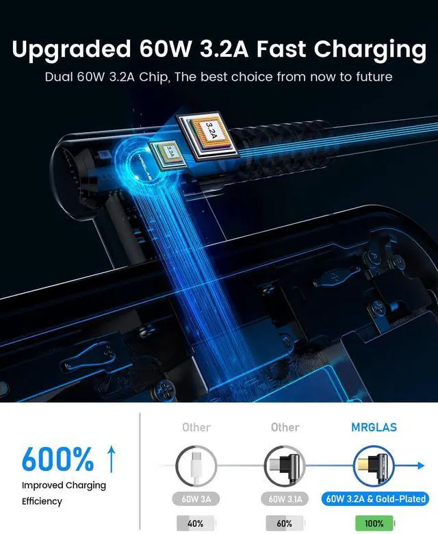 Introducing MRGLAS 2-Pack 60W 3.2A USB C to USB C Charger Cable Fast Charging Right Angle: