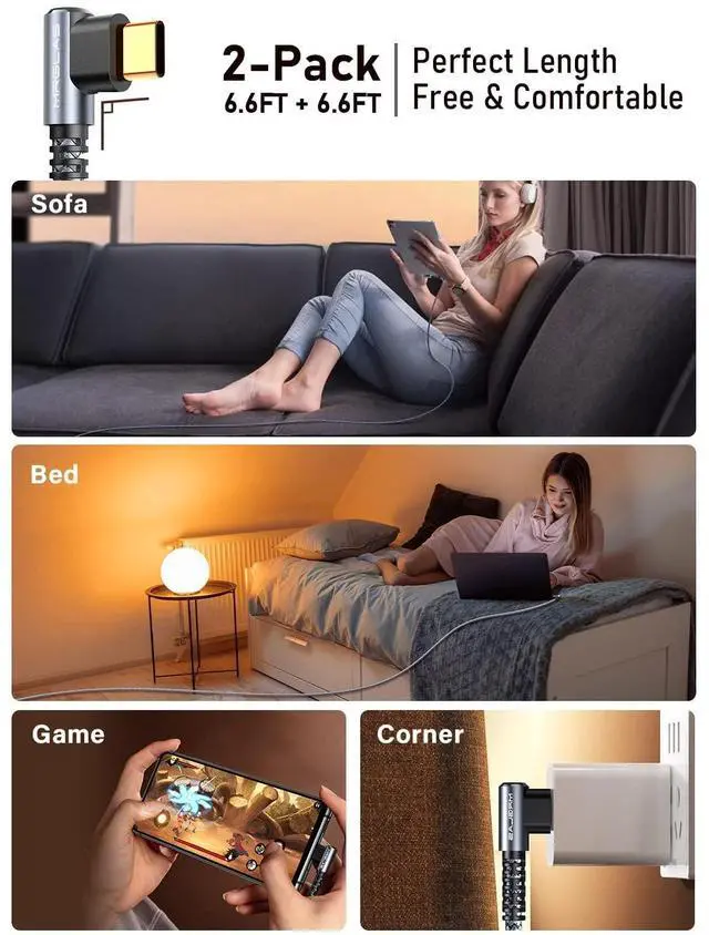 ![Alt view image 3 of 7 - USB C to USB C Cable 60W 3.2A [2-Pack, 6.6+6.6FT] Type C Charger Fast Charging Cable Right Angle Gold-Plated Nylon Braided Cord for iPhone 16 Pro Max 15 Plus Samsung S25 S24 S23 iPad MacBook](https://c1.neweggimages.com/productimage/nb640/C620D2604020O4UGKAA.jpg)