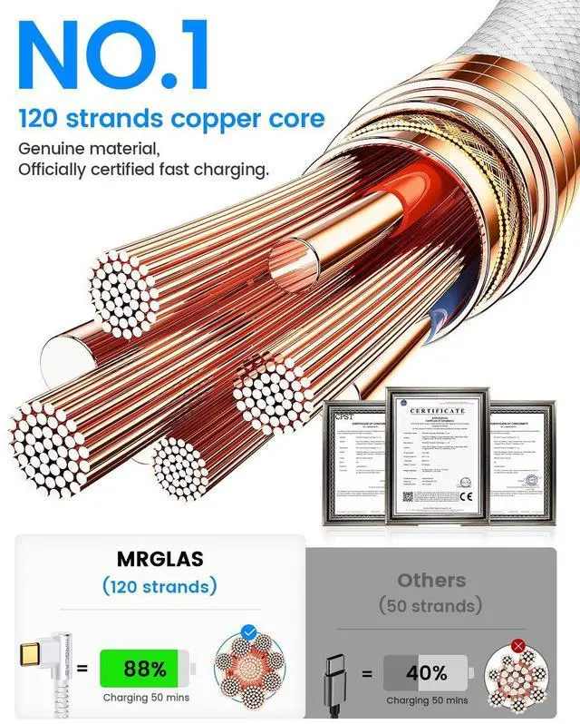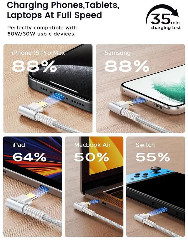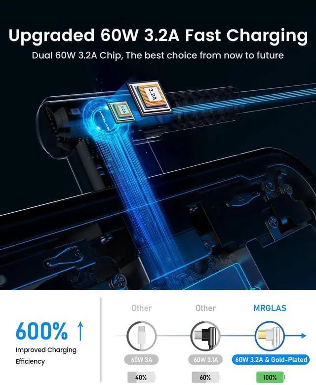 Introducing MRGLAS 2-Pack 60W 3.2A USB C to USB C Charger Cable Fast Charging Right Angle: