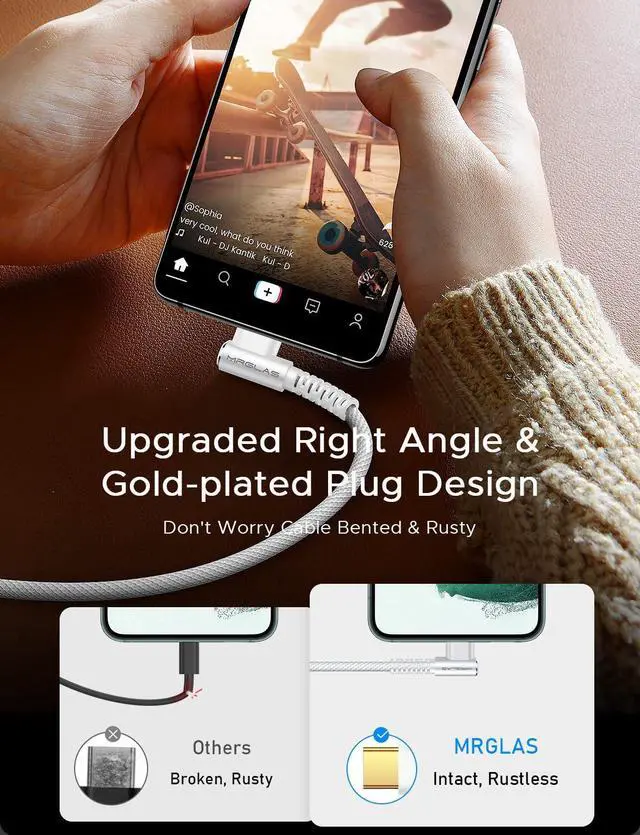 ![Alt view image 5 of 7 - USB C to USB C Cable 60W 3.2A [2-Pack, 6.6+6.6FT] Type C Cable Right Angle Gold-Plated Nylon Braided Cord for iPhone 16 Pro Max 15 Plus Samsung S25 S24 S23 S22 iPad Pro MacBook](https://c1.neweggimages.com/productimage/nb640/C5RZD2603310YBYVK65.jpg)