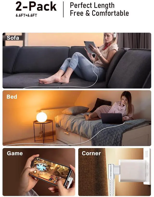 ![Alt view image 4 of 7 - USB C to USB C Cable 60W 3.2A [2-Pack, 6.6+6.6FT] Type C Cable Right Angle Gold-Plated Nylon Braided Cord for iPhone 16 Pro Max 15 Plus Samsung S25 S24 S23 S22 iPad Pro MacBook](https://c1.neweggimages.com/productimage/nb640/C5RZD2603310YBYTX2E.jpg)