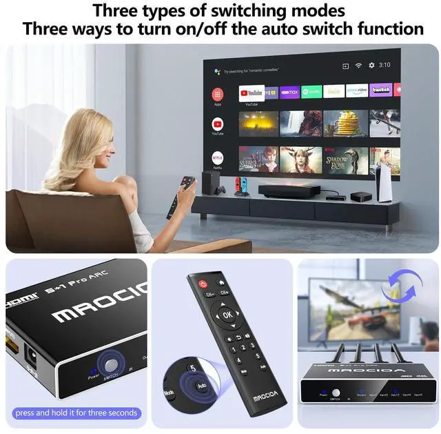 Multifunctional RemoteNewly designed remote control. This HDMI Switch box can control the devices around your TV. When you can't find the remote of your device, it can control the sound of ur device, play streaming media, and even turn on or off the device for u.