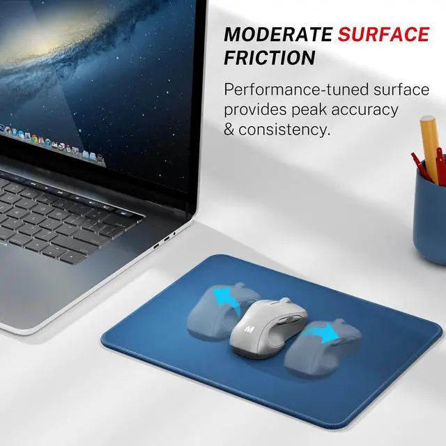 CLASSIC BLACK, STANDARD SIZE: This 8.5 x 11 letter size mouse pad is the perfect fit for almost any workspace. With a thickness of 3mm, it reduces the effects of uneven surfaces, providing a unique blend of speed and control for your mouse, making it ideal for any situation. MODERATE SURFACE FRICTION: Performance-tuned surface provides peak accuracy & consistency. It is optimized for all types of mouse, such as wired, wireless, optical, and mechanical mice. REINFORCED STITCHED EDGES: The stitched edges guard against surface peeling with 360° of anti-fray precision-stitching. STABLE RUBBER BASE: The durable, non-slip rubber base is designed to eliminate unwanted movement. Dense slip-resistant shading can effectively grip any flat, hard, tabletop surface. SHIELDS UP: A spill-proof and stain-resistant coating makes liquids slide right off the surface, effectively preventing unexpected damage from spilled liquids.