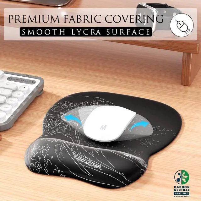 KEHIPIErgonomic Mouse Pad with Gel Wrist Rest, Comfortable Mousepad with Smooth Wrist Support Surface and Non-Slip PU Base for Pain Relief, Computer, Laptop, Office & Home, 9.4 x 8.1 in, Kanagawa Wave