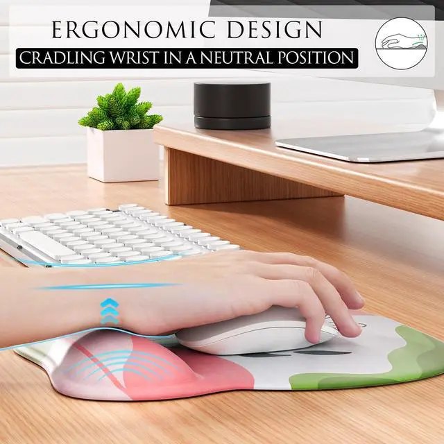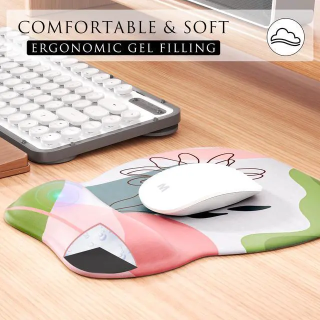 Experience ultimate comfort and support with the Ergonomic Mouse Pad. Filled with soft gel, the wrist rest provides a soothing touch and effective support, reducing stress that can lead to repetitive motion disorders. Encased in high-quality Lycra cloth, the gel pad remains non-sticky, setting it apart from other gel mouse pads. The surface is covered with premium-textured Lycra cloth, treated in a high-pressure chamber at 230°F to create a super-smooth area that guarantees accurate mouse movement and pinpoint accuracy. This pad is compatible with wired, wireless, optical, and mechanical mice. Ensuring stability and uninterrupted mouse operation, the soft, non-skid PU base firmly grips the desktop, preventing any sliding.