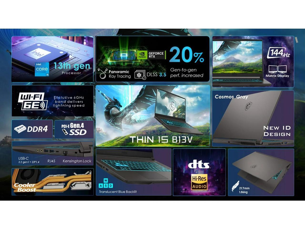 MSI Thin 15.6" FHD 144Hz Gaming Laptop Intel Core i5-13420H (Beat i7-12650H) NVIDIA GeForce RTX 4050 32GB RAM 2TB SSD WiFi 6E Bluetooth 5.3 Backlit KB Webcam HDMI USB-C RJ45 Windows 11 Pro Gray