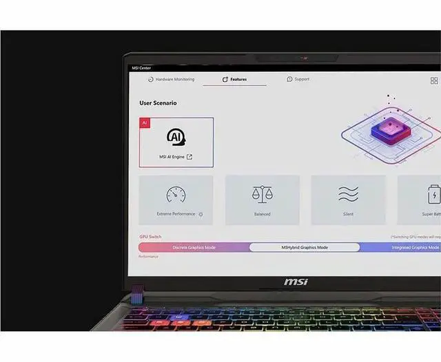 DLSS 4 massively increases performance and improves image quality for top games using the power of AI.Game-Winning ResponsivenessNVIDIA Reflex 2 with Frame Warp gives you the ultimate responsiveness, enhancing target acquisition, reaction time, and aim precision.True-to-Life GraphicsExperience cinematic quality visuals at unprecedented speed with full ray tracing and breakthrough neural rendering technologies.Al, Ready for YouMSI Gaming Laptops are NVIDIA NIM-ready and engineered to run NVIDIA NIM microservices-optimized Al models for language, speech, vision, content generation, and more. With these tools, enthusiasts and developers can build Al assistants, develop productivity plugins, or craft innovative content creation workflows locally on RTX AI PCs. Shape tomorrow's Al today with the power of NVIDIA RTX.