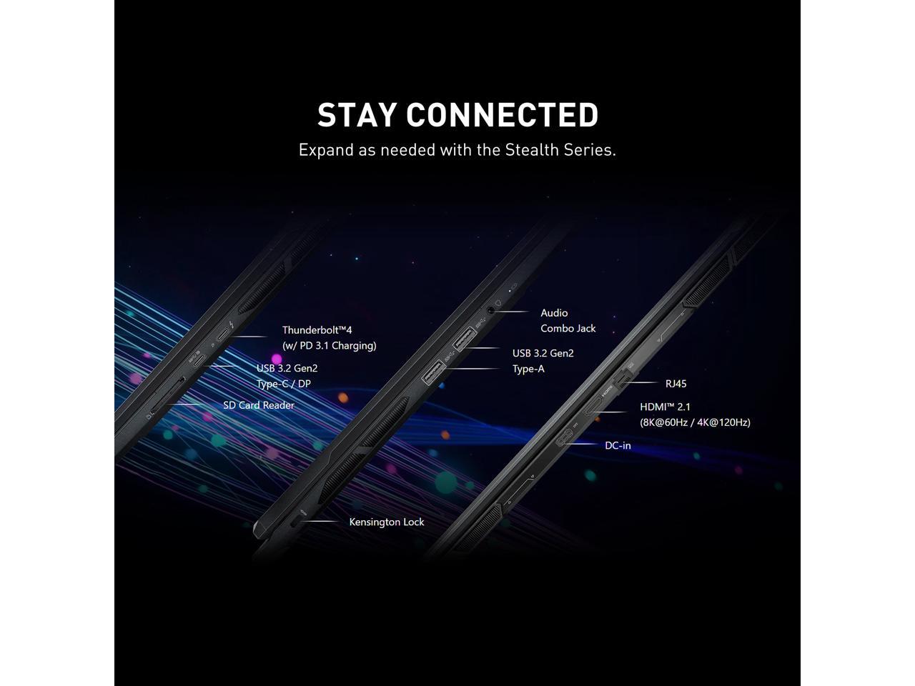 MSI Stealth - 18" GeForce RTX 4080 Laptop GPU - Intel Core Ultra 9 185H - 32GB Memory - 1 TB NVMe SSD - Wi-Fi 7 Windows 11 Home Gaming Laptop - 120 Hz Mini LED (Stealth 18 AI Studio A1VHG-008US )