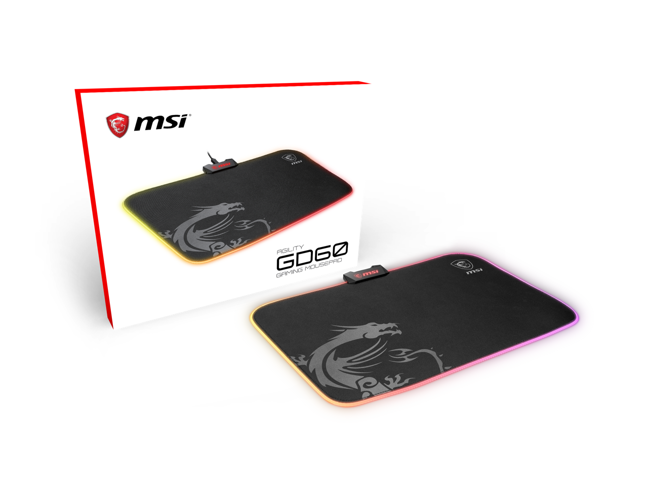 MSI AGILITY GD60 (RGB) Mouse Pad, 15" x 11", Micro-Textile Surface, Natural Rubber Base