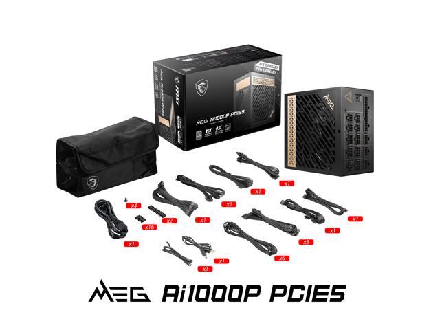 MSI- MEG Ai1000P PCIE 5.0, 80 PLATINUM Full Modular Gaming PSU, 12VHPWR Cable, 4080 4090 ATX 3.0 Compatible, 1000W Power Supply