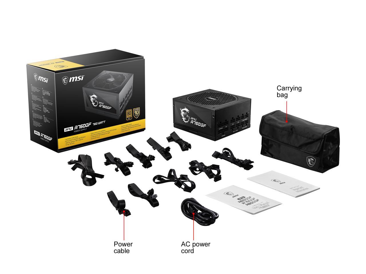 MSI MPG A750GF, 80 GOLD Full Modular Gaming PSU, Japanese Electrolytic capacitor, 750W ATX Power Supply