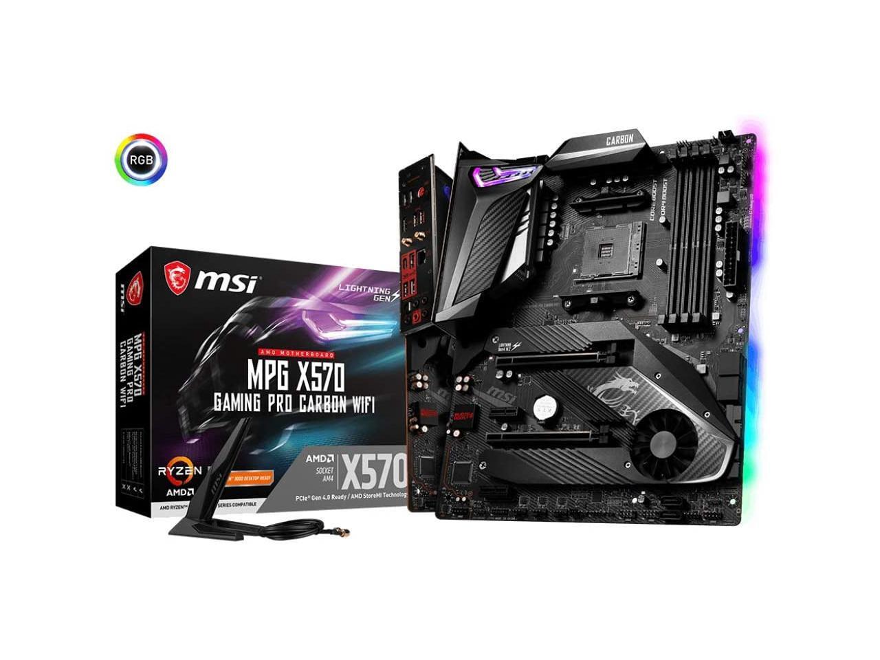 MSI MPG X570 GAMING PRO CARBON WIFI Motherboard (AMD AM4, DDR4, PCIe 4.0, SATA 6Gb/s, M.2, USB 3.2 Gen 2, AX Wi-Fi 6, HDMI, ATX)