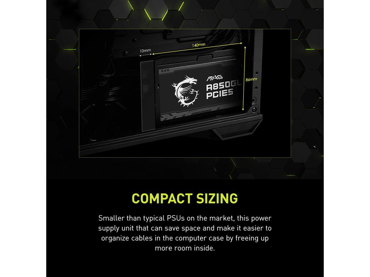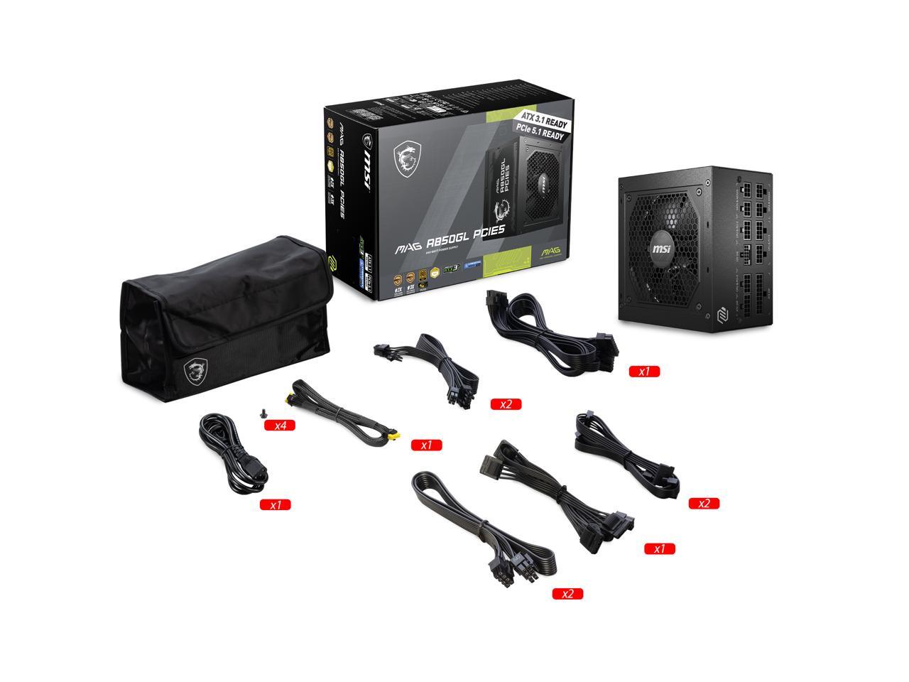 MSI MAG A850GL PCIE5, Fully Modular Compact Gaming 850W Power Supply, 80+ Gold, ATX 3.1 & PCIe 5.1 Ready, Native Dual-color 12V-2x6 cable, 10 Year Warranty